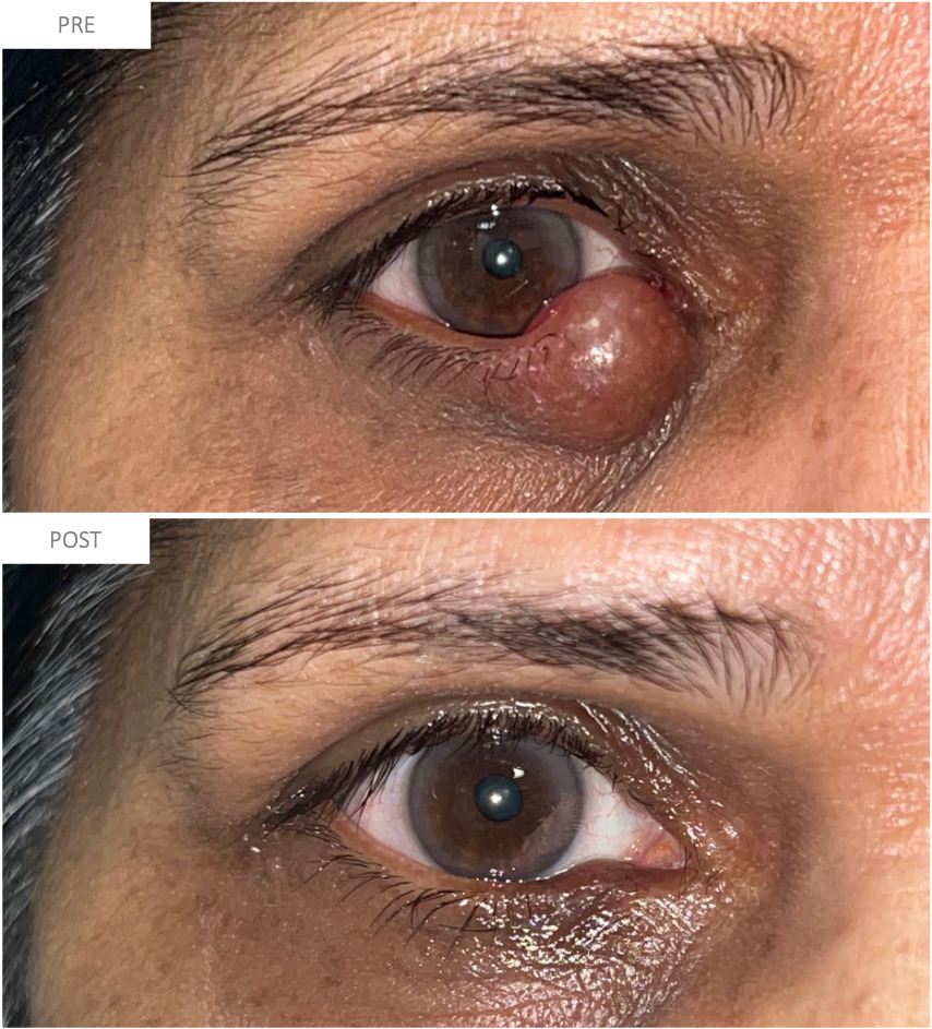 Chalazia and styes are the most common. These lesions appear due to the obstruction of a lacrimal gland, which causes inflammation and discomfort in the eyelid. Surgical treatment is quick, minimally invasive and leaves no visible scar, as the incision is made on the inside of the eyelid.